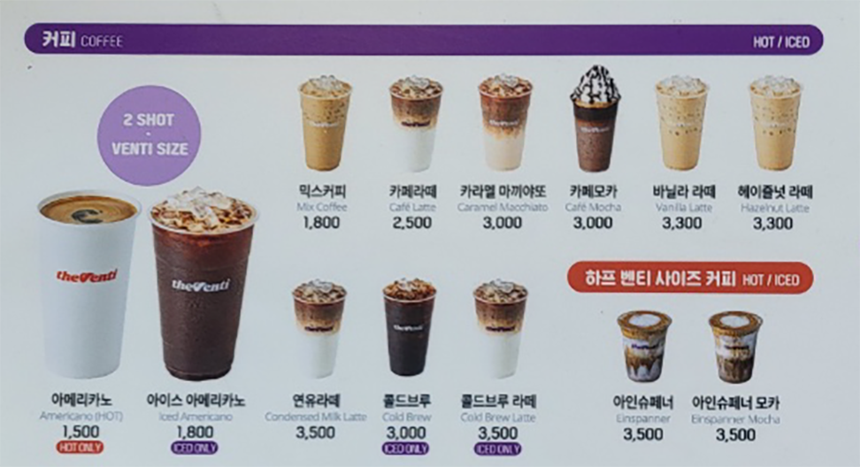 800호점을 넘긴 더벤티 커피의 메뉴와 가격 부터 정리해보도록 하겠습니다. 사진이 작아서 보기 힘든 분들은 아래에 있는 더벤티 커피 사이트 확인해주세요.