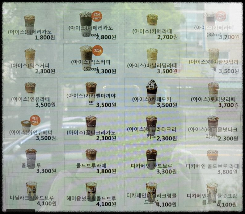 그럼. 무더운 여름이니깐 아이스커피 메뉴 살펴볼게요.