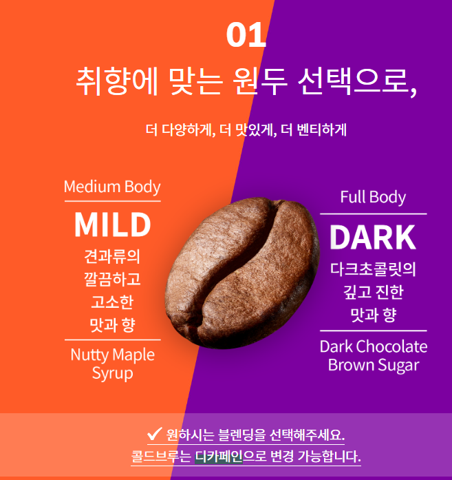 더벤티 커피는 원두를 선택할 수 있어요. 마일드와 다크, 저는 진한 커피를 좋아하기 때문에 늘 다크원두를 선택합니다. 원두 선택은 더벤티 매장에 있는 키오스크에서 선택할 수 있습니다. 그럼. 이런 원두로 내린 더벤티 커피 메뉴와 가격 살펴볼게요.