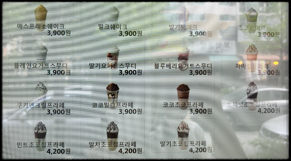 다섯 번째로 소개해드리는 메뉴는 아이들이나 달달한 음료를 찾는 분들이 좋아하는 메뉴예요. 아이스 블렌디드를 살펴보면 부드러운 우유와 얼음을 블렌딩한 밀크쉐이크, 부드러운 바닐라와 바삭한 쿠키가 블렌딩 된 쿠키 앤 크림 프라페, 플레인 요구르트와 상큼한 딸기과육이 들어있는 딸기 요구르트 스무디 등이 있어요.