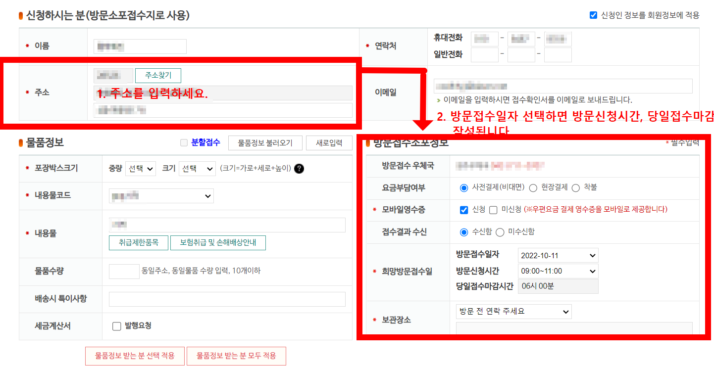 바로 택배기사님 방문 시간. 이게 방문 택배에서 가장 중요한 부분이죠?!