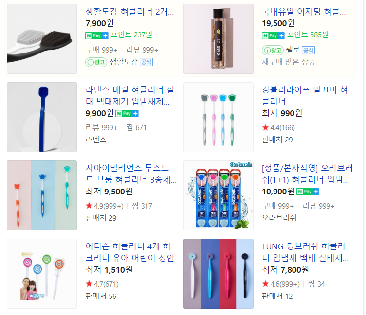 하얀백태가 입 냄새의 발생 원인인건 알고계시죠? 저도 양치질할때마다 꼭 사용하게 되는 것이 혀클리너인데요. 저는 다이소에서 구매해서 사용 중이에요. 혀클리너는 목구멍 가까이까지 꼭 할 필요는 없다고해요. 구역질이 안나는 범위에서 사용하면 좋을것 같아요.