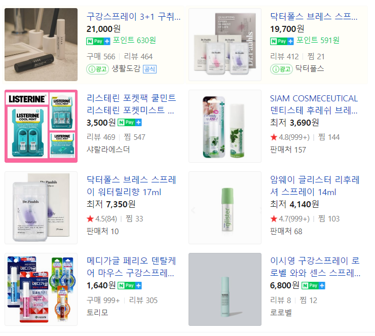 구강스프레이는 많이 아실것 같아요. 구취제거 급하게 해야할때 좋은 아이템같아요. 구강스프레이는 꼭 유해성분 없는 것으로 구매해야하고 저는 몇번 사용해보니 입속이 건조해지는 것같아서 최근에는 사용하지 않고 있답니다.
