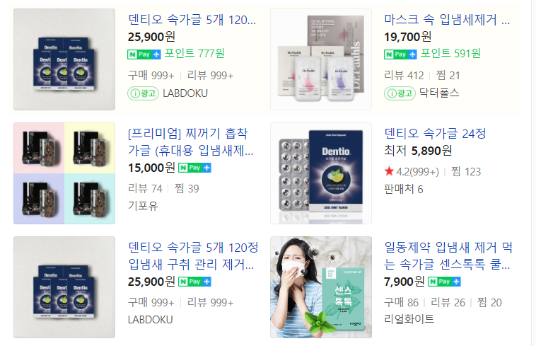 이외에 필름으로 되어있는 가글, 치실 등등 다양한 제품이 있는데, 가장 중요한 것은 올바른 양치질, 치실사용, 이너뷰티인 것 같습니다.