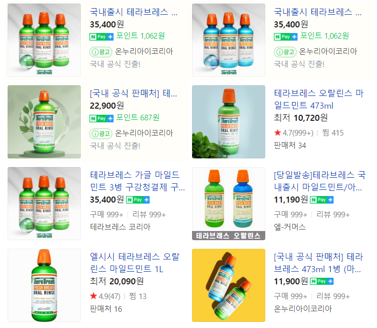 언제부턴가 가글하면 테라브레스가 떠오를 정도로 핫한, 유명해진 제품이에요. 이전에는 사실 동아제약에서 나온 가그린이나 존슨앤존슨에서 나온 리스테린만 있었는데 몇년전부터는 테라브레스제품이 광고도 많이하고 순한 가글의 대명사가 된것 같아요. 저도 가글은 테라브레스껄 사용하고 있는데 다른 브렌드에서도 유해물질없는 순한 가글 많이 출시되고 있으니 가성비 좋은 가글, 구강청결제 구매해보세요.