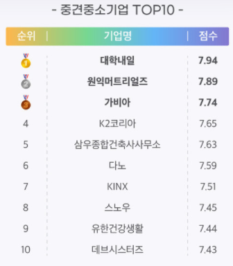 세번째는 중견중소기업 TOP 10입니다.