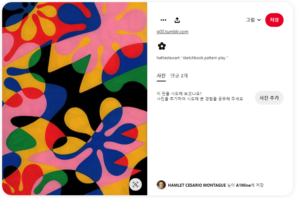 마지막으로 이렇게 뽑은 색을 다른 디자이너들은 어떻게 사용하고 있는지 볼까요? 우리가 그림이나 패션, 인테리어를 보고 강하다. 강렬하다고 생각이 드는 이유는 다 이런 색을 디자이너들이 적절하게 사용했다는 것이겠죠? 아래에 있는 이미지는 모두 핀터레스트에서 가지고 왔습니다. 관련 작가의 작품이 더 궁금하면 이미지 옆에 출처 참고해주세요.