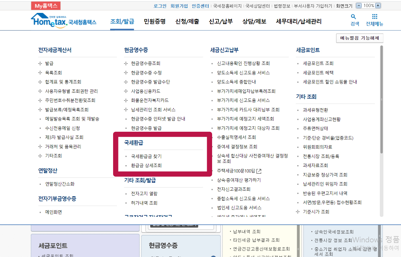 3. 국세환급금 찾기를 누른다.