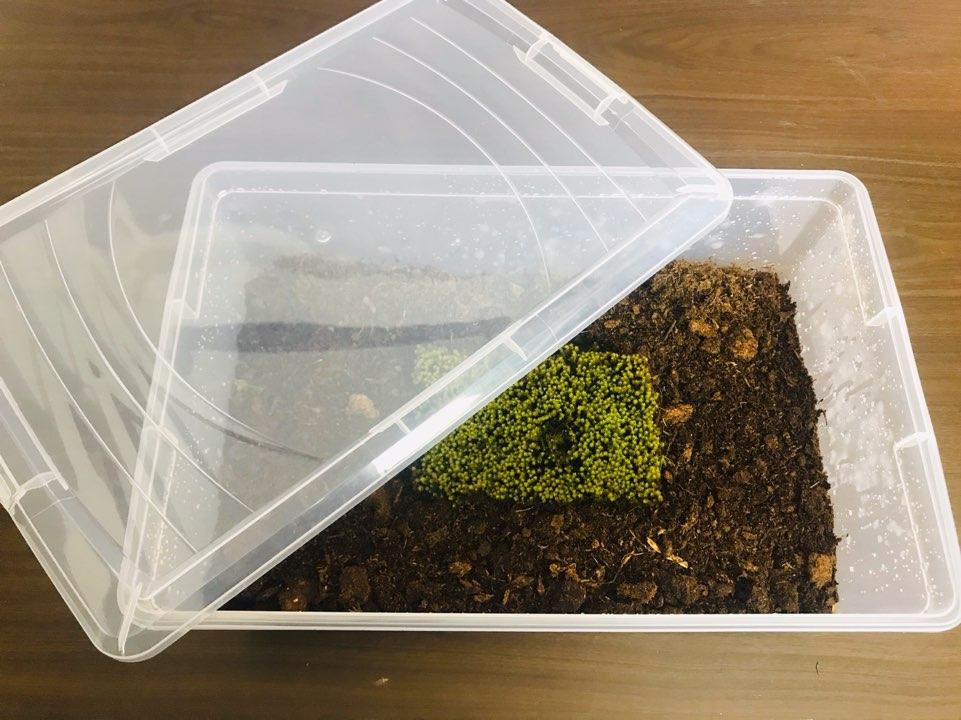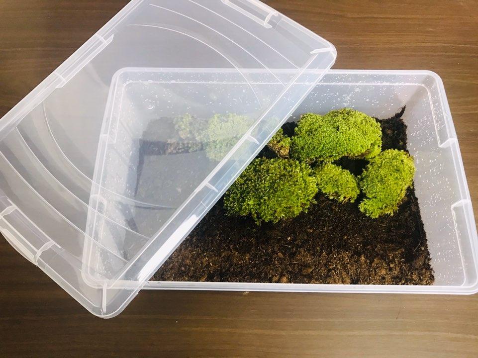 그리고 이끼가 갈변하기 시작한다면 그 이유는 과습이 문제라고 해요. 갈변하기 시작하면 물 양을 조절해보세요. 수조 같은 곳에 키우실 때도 물이 흐르는 주변부에 심어야 한답니다. 저는 매일 이끼 통에 뚜껑을 열어서 환기를 시켜준답니다. 그 이유는 반밀폐일 때 이끼가 아주 예쁘게 잘 자란다고 해요. 유트브보니 정말 밀폐해서 키우시는 분들 있는데 이야기 들어보면 이끼가 웃자라고 번식을 하지 않는다고 하더라고요. 그런데 사실 정말 밀폐해놓고 이끼 스스로 수분관리도 하면서 자라면 키우는 사람 입장에서는 편할 것 같은데 이끼가 웃자라면 미관상 좋지 않더라고요. 그래서 저는 매일이나 이틀에 한 번씩 한 시간 동안 뚜껑을 열어서 환기시켜 준후에 분무해주고 뚜껑을 닫아준답니다. 이렇게 하니 이끼들이 아주 잘 자라고 있어요. 그리고 완전 통기해서 키우시게 되면 수분 유지에 굉장히 신경 쓰셔야 해요. 특히 건조한 날에는 이끼가 금방 마르게 되니 수분관리 잘되시는 분들만 완전 통기로 키우시면 될 것 같아요.