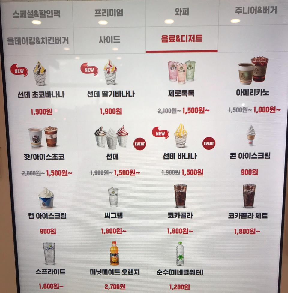 제가 버거킹 메뉴 중 두번째로 좋아하는 것이 프렌치프라이예요. 통통한 프렌치프라이 좋아해서 버거킹 메뉴 좋아합니다. 지금 너겟킹과 프렌치프라이가 행사 중에 있습니다. 마지막 음료와 디저트 메뉴입니다.